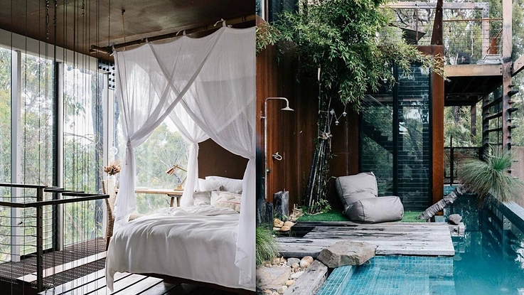 Having been featured multiple times in several international design magazines, this luxury accommodation in Daylesford features full heating, an open fire and beautiful details by Bedouin Societe.