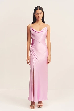 This semi sheer viscose cowl neck maxi dress features a divine scarf detail with a striking fluid drape. Yes please.