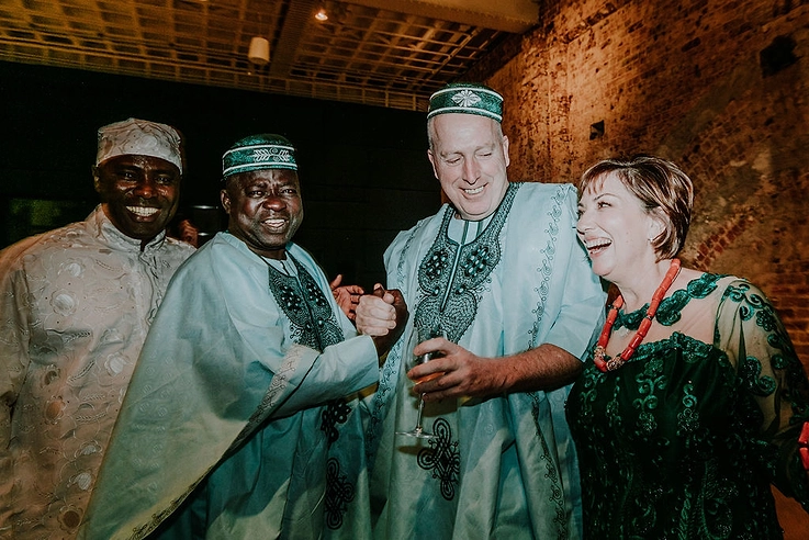 Uyi’s friends danced into the reception wearing Nigerian agbada, followed by us with a choreographed afrobeats dance.