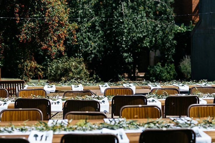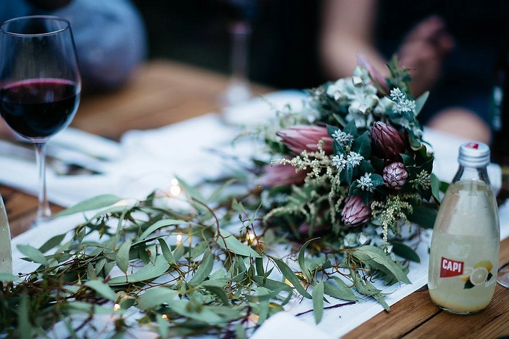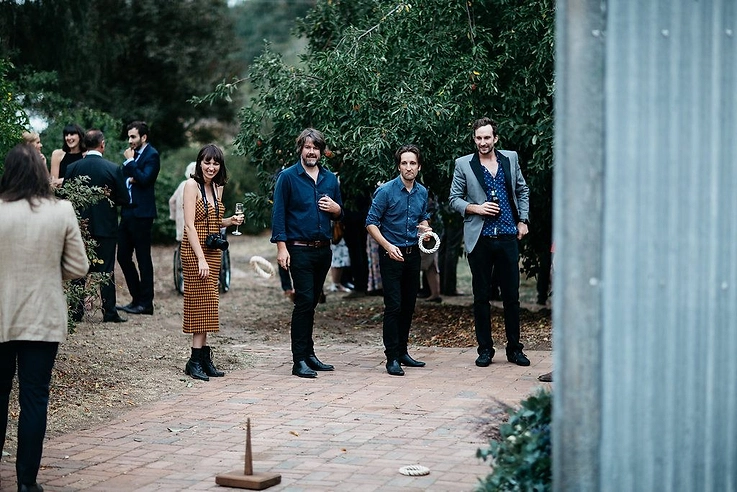 Our parents were the DIY masters really. They cut stumps for seating, wood platters for nibbles, table cloths out of old calico, restored some old games found at op shops and more. We went flower rummaging for some basic greenery for the tables and our friend Anna did all the signage by hand on plywood that we bought from Bunnings.