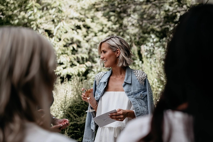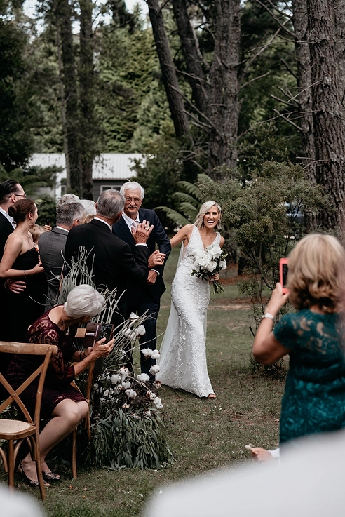 I was lucky enough to have my Godmother as our celebrant. We always wanted to write our own vows and having Barb guide us through the process was so special. We felt super comfortable with her so that allowed us to share vows with her for advice and feedback without having to involve our partner. We wanted to write them independently so our partner was hearing them for the first time on the big day… it made for a very emotional moment!
