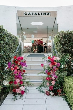 Wedding vibe: We wanted our wedding to unapologetically represent us as a couple. We broke a lot of traditional styling rules – our invites were custom illustrated champagne bottle cut outs, had pistachio striped linen and enough flowers to almost sink Catalina. We wanted our wedding to be a party, celebrating our love and the fact that we made it after many, many changes to plans and bumps in the road. If I had to boil it down, I would call it Italian Summer Luxe – bright red, magenta pink and yellow roses really brought to life and they were a BIG feature of the styling.